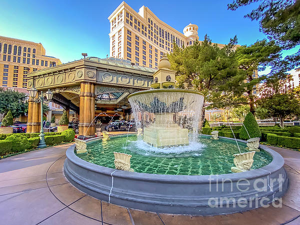 A water fountain outside the front entrance to Bellagio Hotel & Casino in Las Vegas.